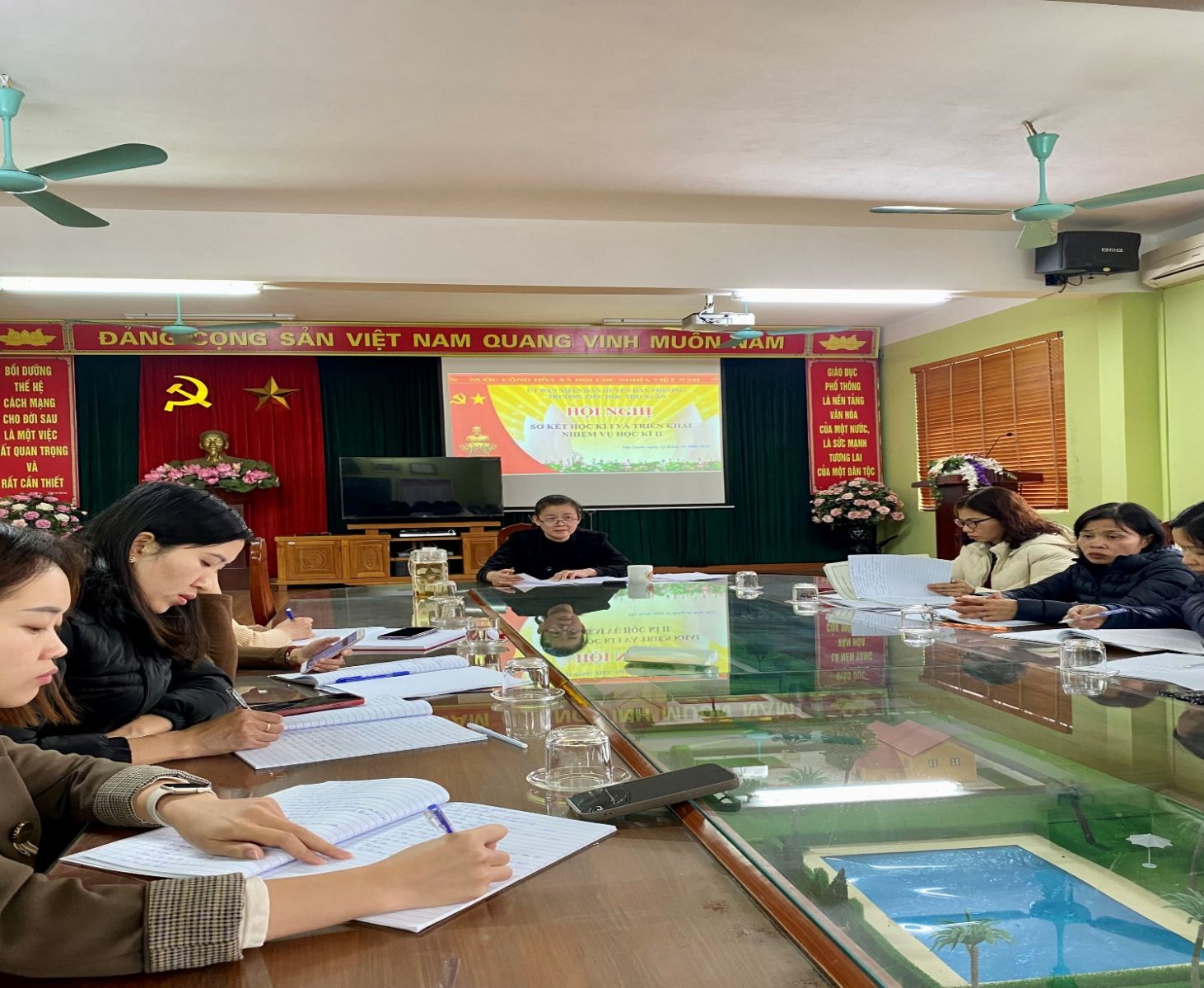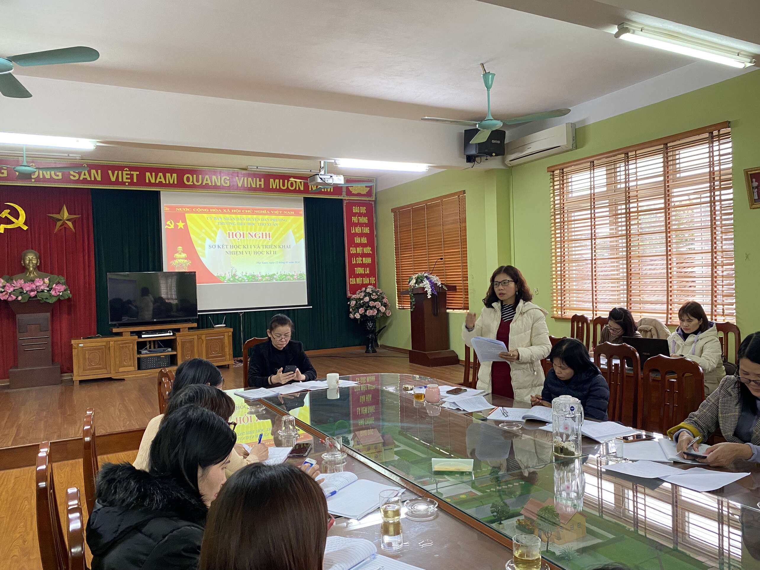 Trong hội nghị, cô Lê Hải Yến – Hiệu trưởng nhà trường đã báo cáo sơ kết học kì 1 năm học 2023 - 2024, nhằm đánh giá lại những kết quả đã đạt được, rút kinh nghiệm những mặt còn tồn tại và đề ra phương hướng phấn đấu để hoàn thành xuất sắc nhiệm vụ năm học.